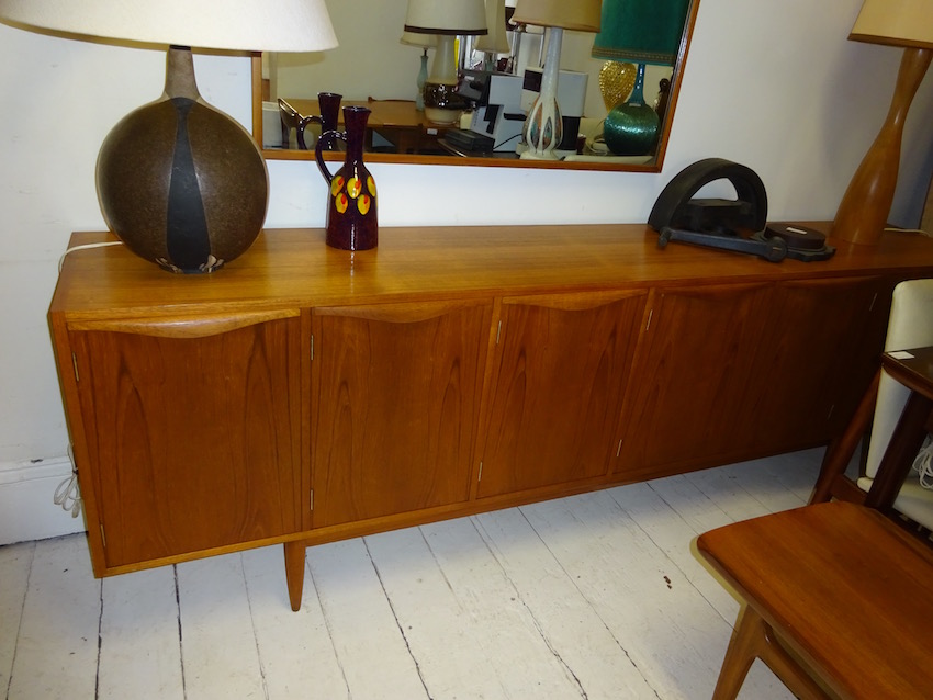 This huge Chiswell sideboard is in amazing condition presenting in near new condition. It is from the late 1960s so has been kept very well, it has a huge amount of storage and these Chiswell sideboards were always built to the highest standards. The doors are all topped with elegant wave handles and the drawers are all beautifully built and detailed. It would make a great television cabinet or just great storage. 243 x 45 x 78cm.